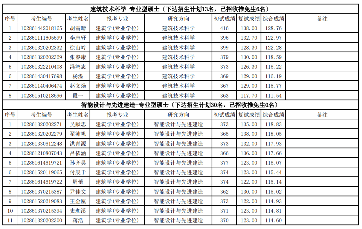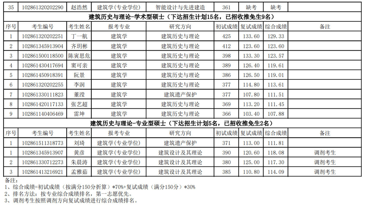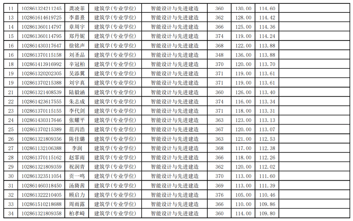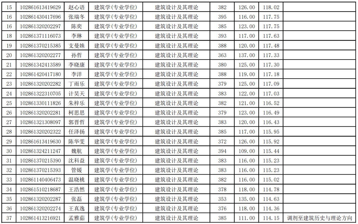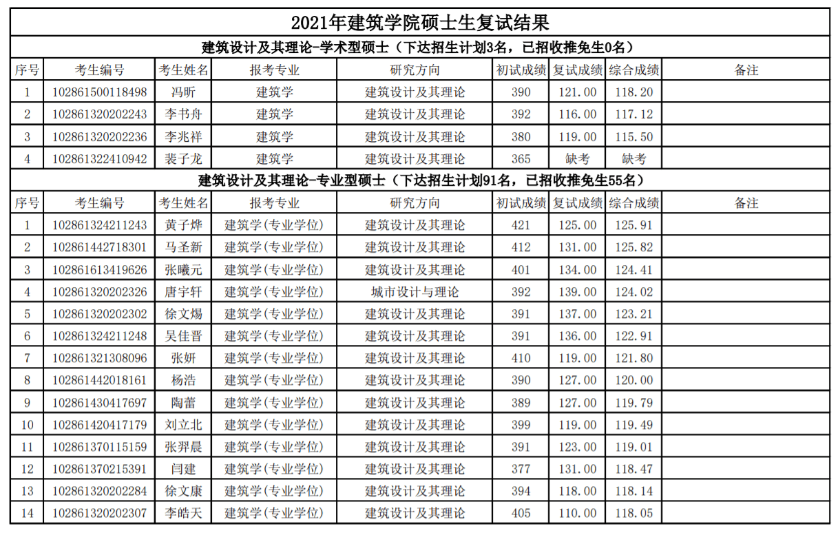 二、东南大学21年建筑学院录取结果