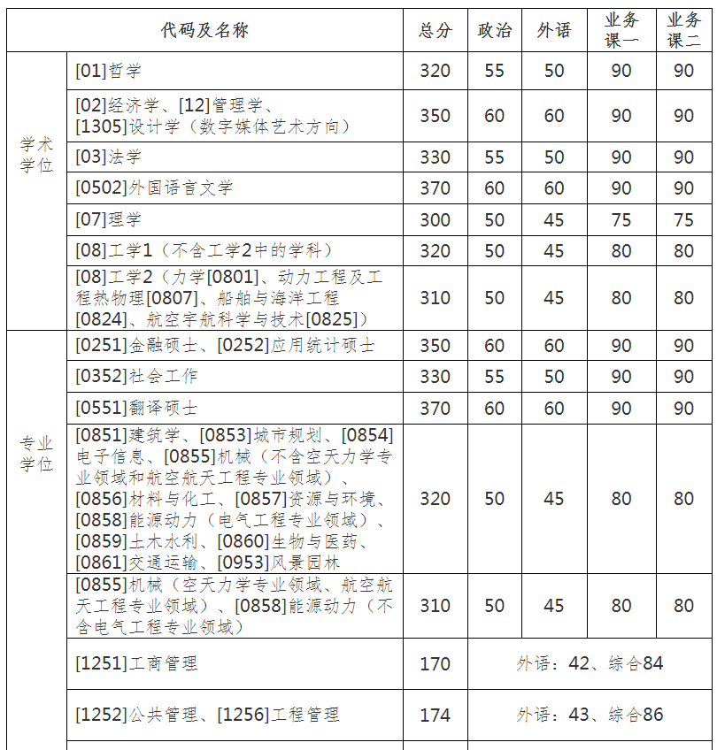 哈尔滨工业大学 2021年硕士研究生招生考试复试基本线