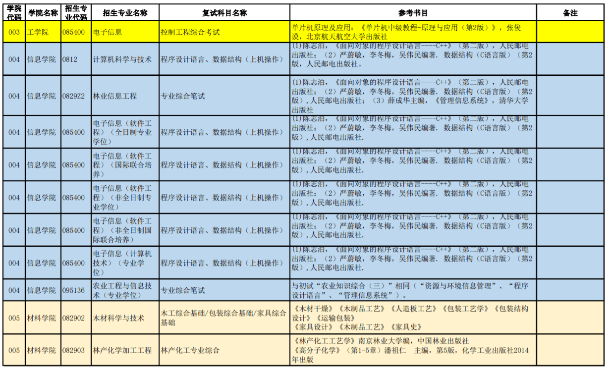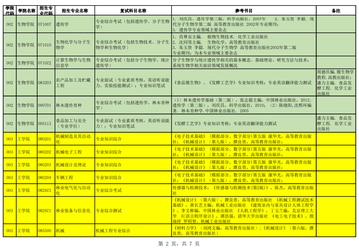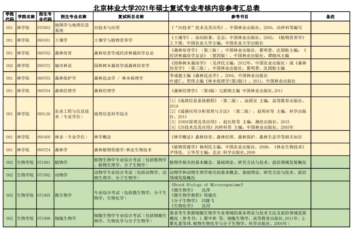 北京林业大学2021年硕士复试专业考核内容参考汇总表