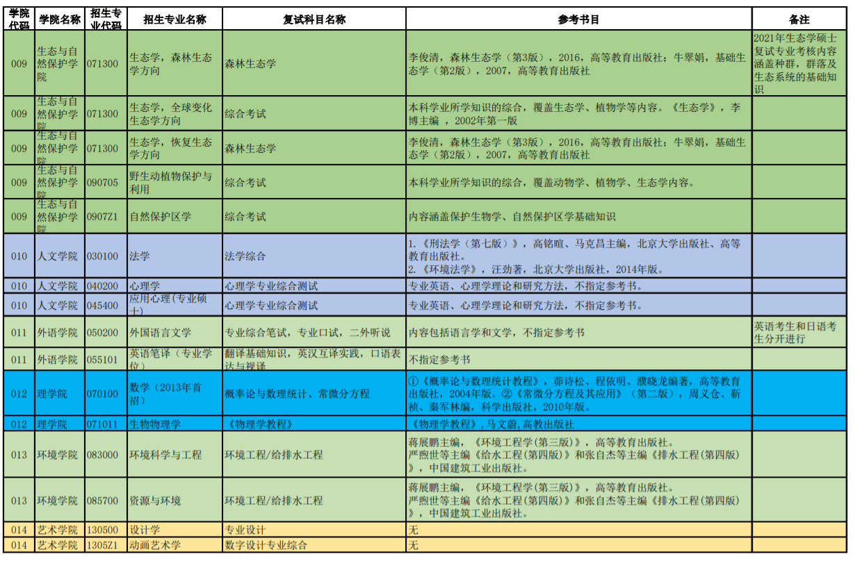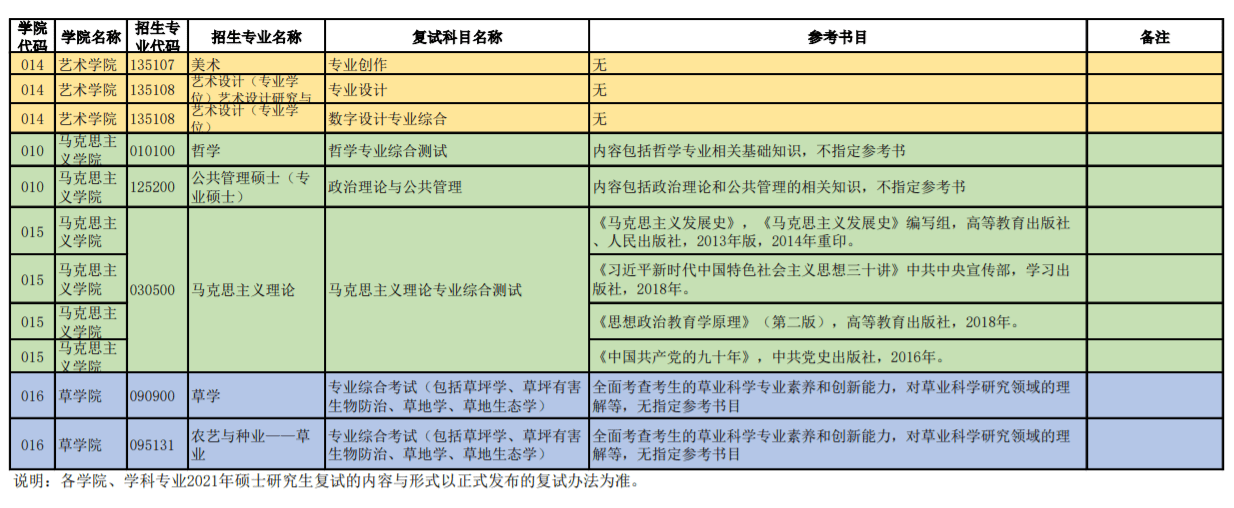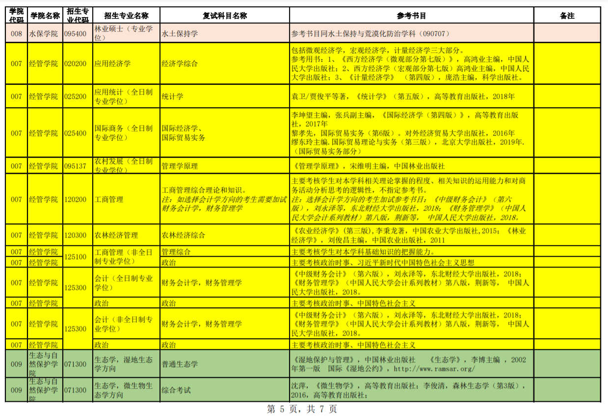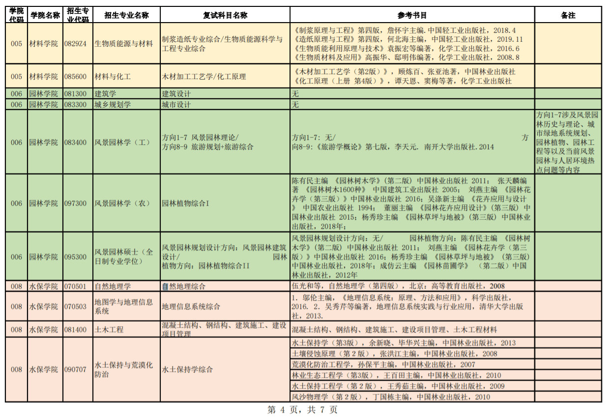 北京林业大学2021年硕士复试专业考核内容参考汇总表