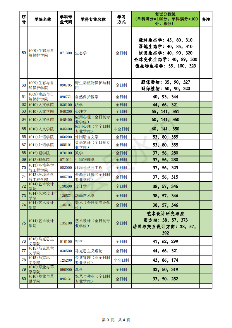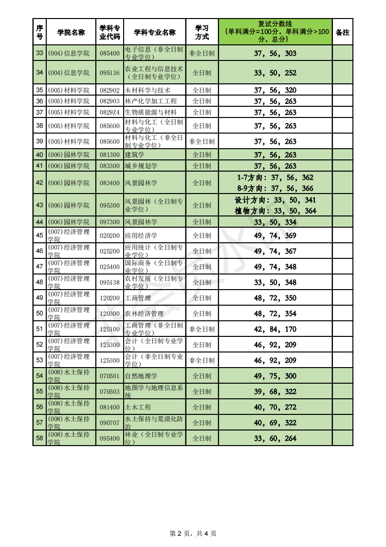 北京林业大学2021年硕士研究生招生考试复试分数线