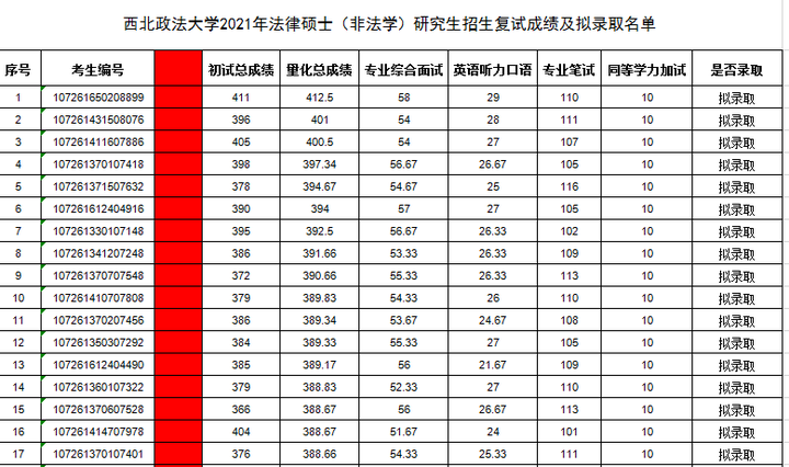 (三)2021西北政法大学法硕(非法学)录取人数(含录取名单)