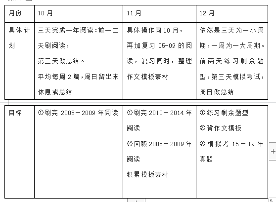 我是从05年开始做的练习,由于英语阅读占分比较多,所以前两个月就猛练阅读,一般是三天为一小周期,7天为一大周期。看错题的时候,不是单纯知道选项错在哪里,是还要知道这属于什么错误,比如说偷换主语,过度推测。这里推荐看唐迟讲的阅读。三天小总结最好是把做错的题的类型,都标出来,七天大总结就那其中两篇阅读或者错的比较多的阅读,手写翻译。大家千万不要小看翻译这一步,对后面的题型有很大帮助。还有就是最好自己整理模板,而素材都来源于我们的阅读,这样是最符合考研老师要求的作文啦。