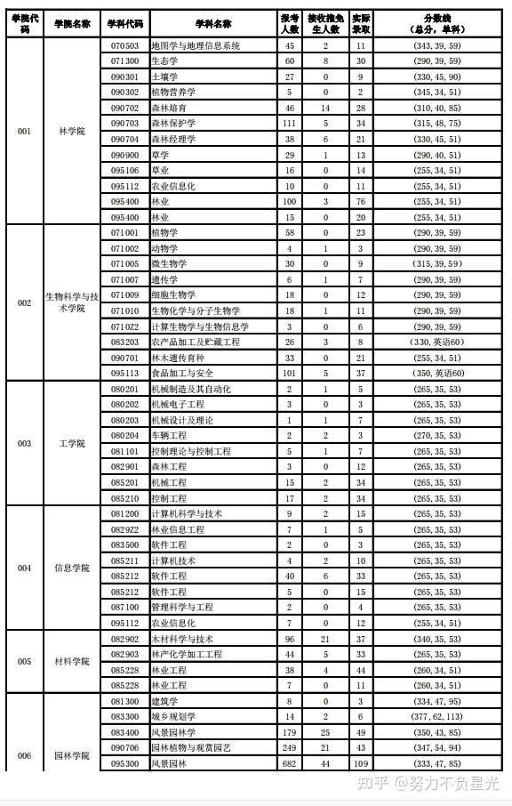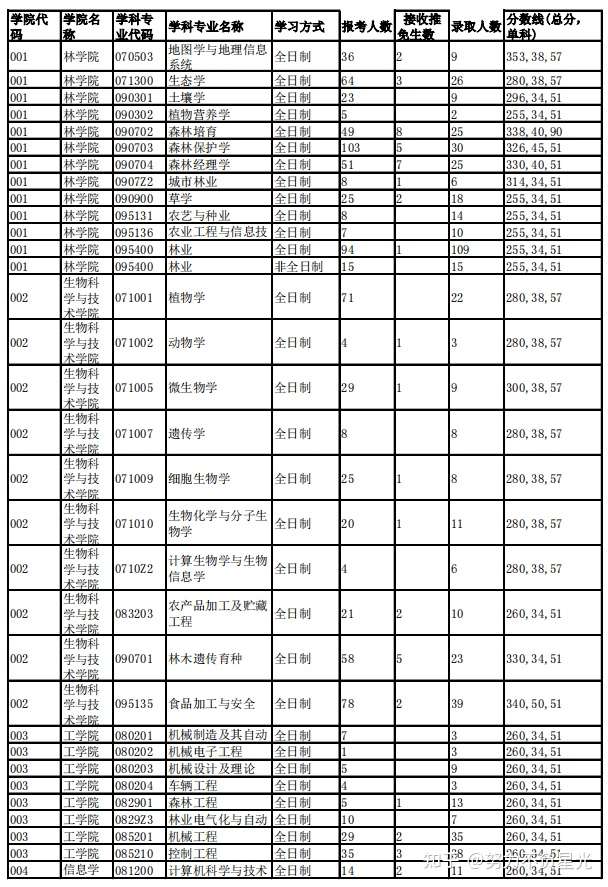 导读:本文包含北林16-21年的考研数据,包括各个学院专业的接收推免生人数、报考人数、录取人数 (不含推免生)、复试分数线(单科分数线+总分分数线)。