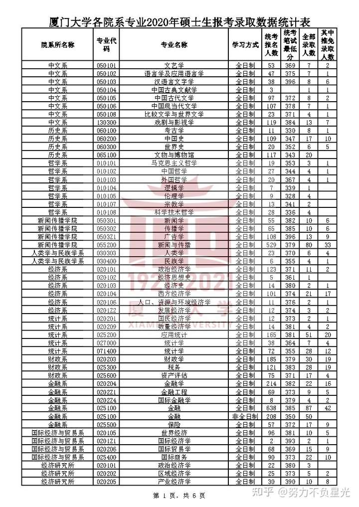 导读:本文的报录比数据来自厦大官网,包含了厦大的所有考研专业,后面如果学校更新了21年的报录比,我会更新的。希望有帮到大家。具体包括统考报名人数、笔试最低分、录取人数、推免保研人数。
