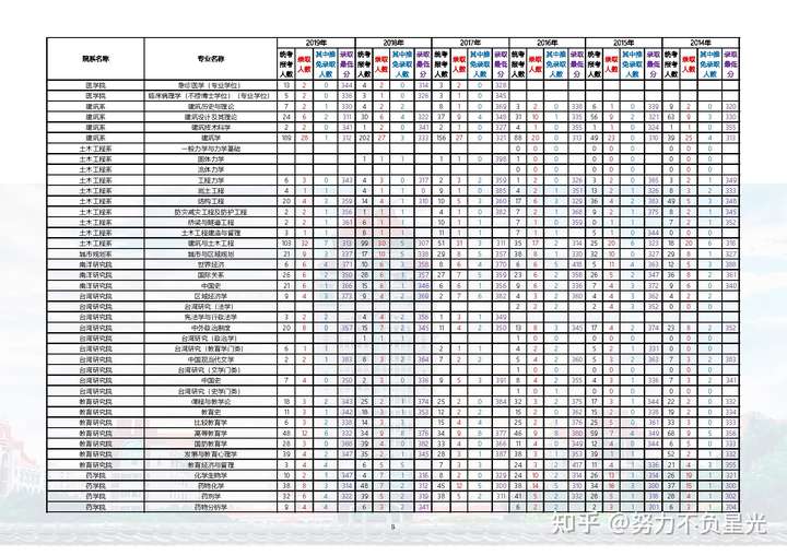 厦门大学各院系专业2014—2019年硕士生报考录取数据统计表