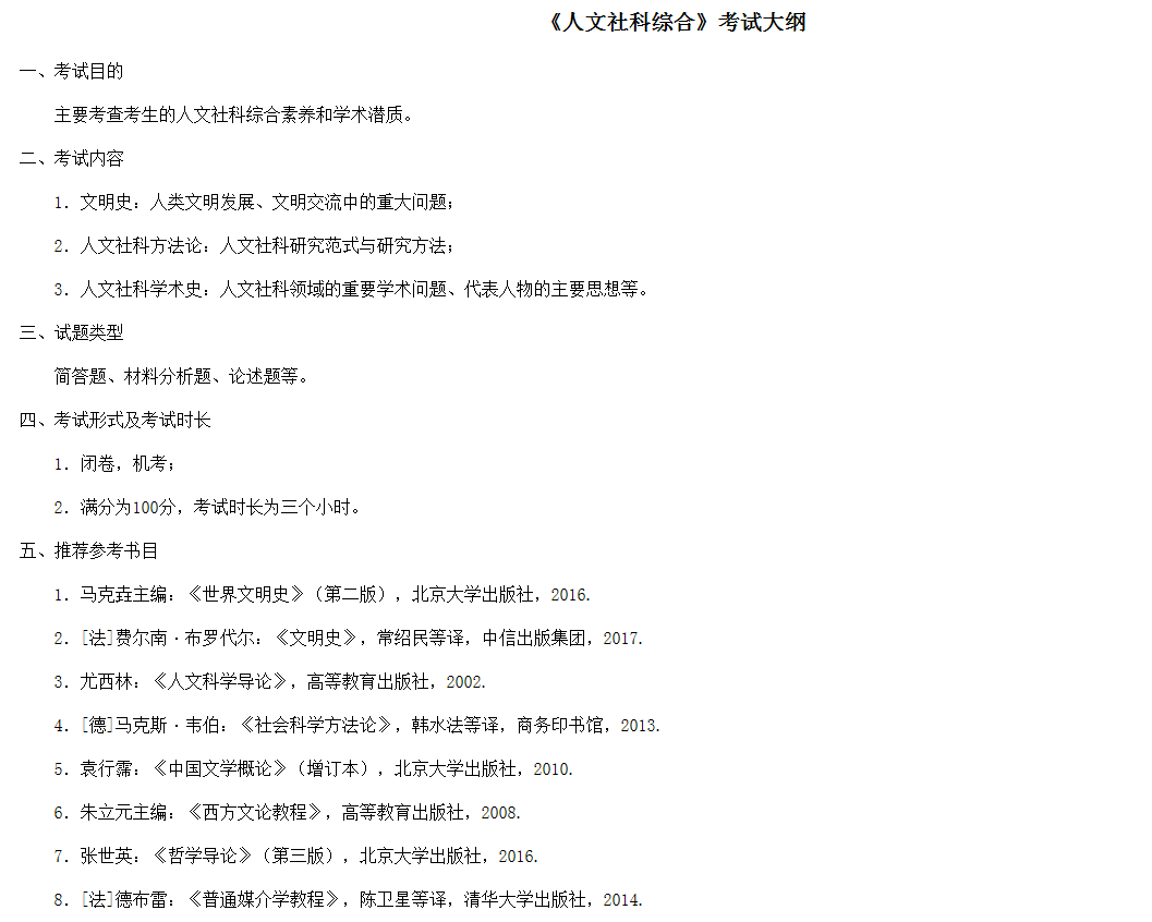 | 普通招考初试科目: | 人文社科综合、学术写作 |