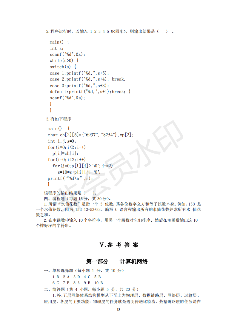 826计算机网络和C语言程序设计