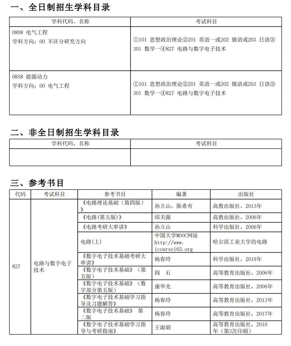 哈尔滨工业大学考研辅导班:2022年哈尔滨工业大学电气工程及自动化学院考研招生目录、考试科目、参考书目
