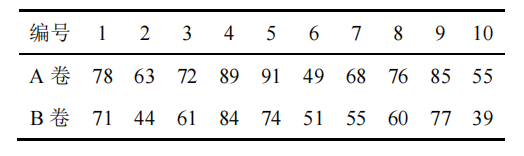 1、由 10 名学生组成一个随机样本,让他们分别采用 A 和 B 两套试卷进行测试所得成绩如下表: