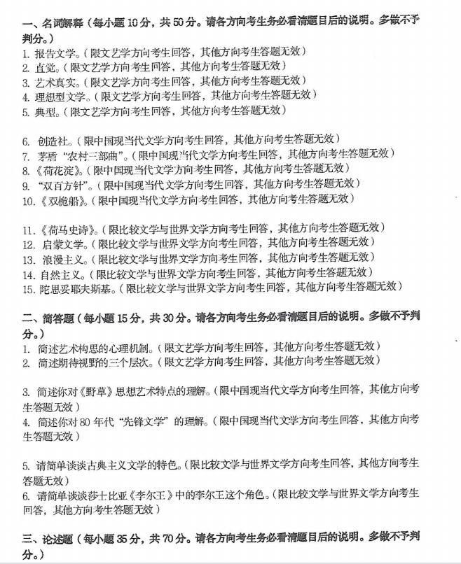 浙江工商大学考研辅导班:2021年浙江工商大学硕士考研真题之858中外文学基础