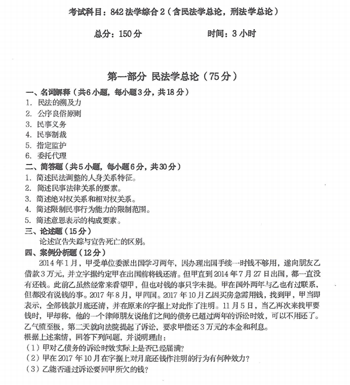 浙江工商大学考研辅导班:2021年浙江工商大学硕士考研真题之842法学综合2(含民法学总论、刑法学)