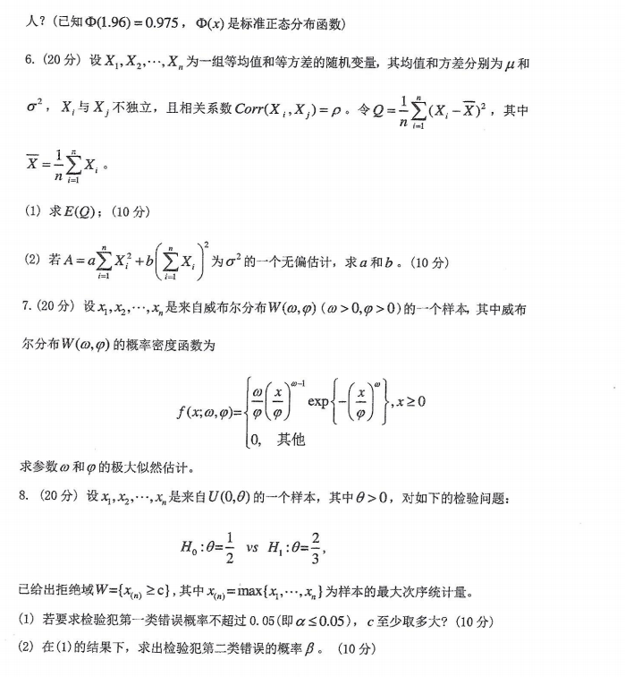 浙江工商大学考研辅导班:2021年浙江工商大学硕士考研真题之813概率论与数理统计