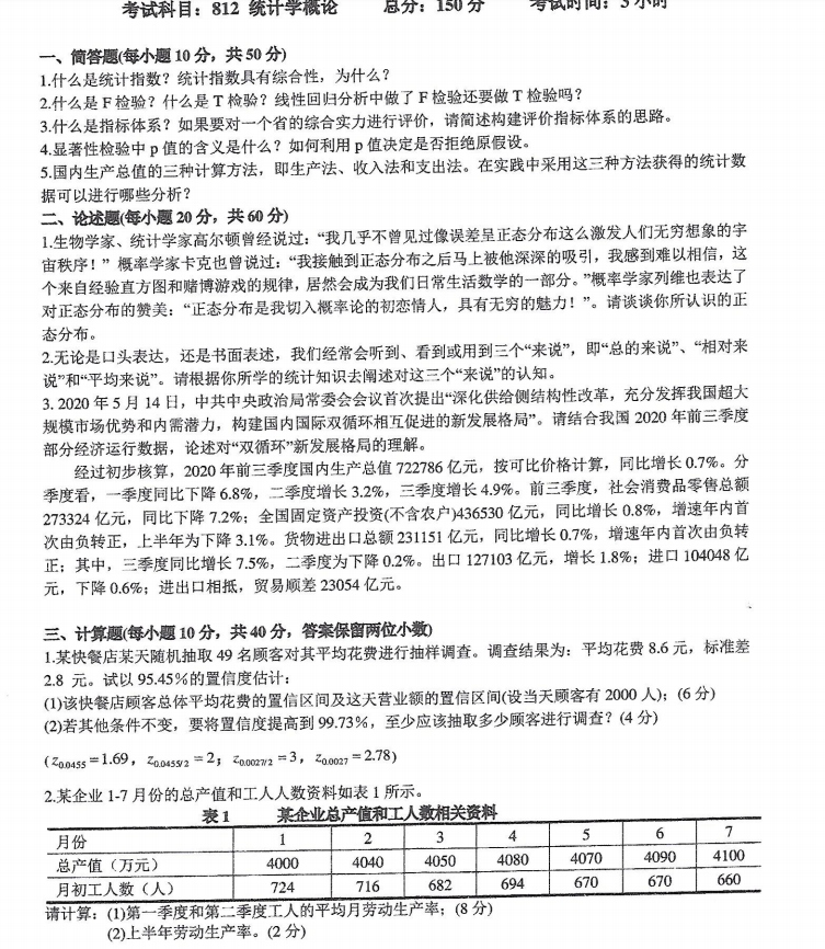 浙江工商大学考研辅导班:2021年浙江工商大学硕士考研真题之812统计学概论