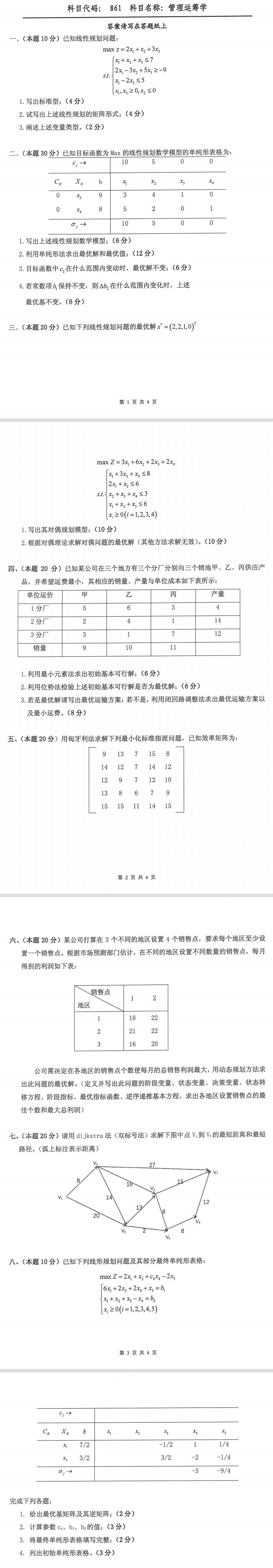 浙江财经大学考研辅导班:2021年浙江财经大学硕士考研真题之861管理运筹学