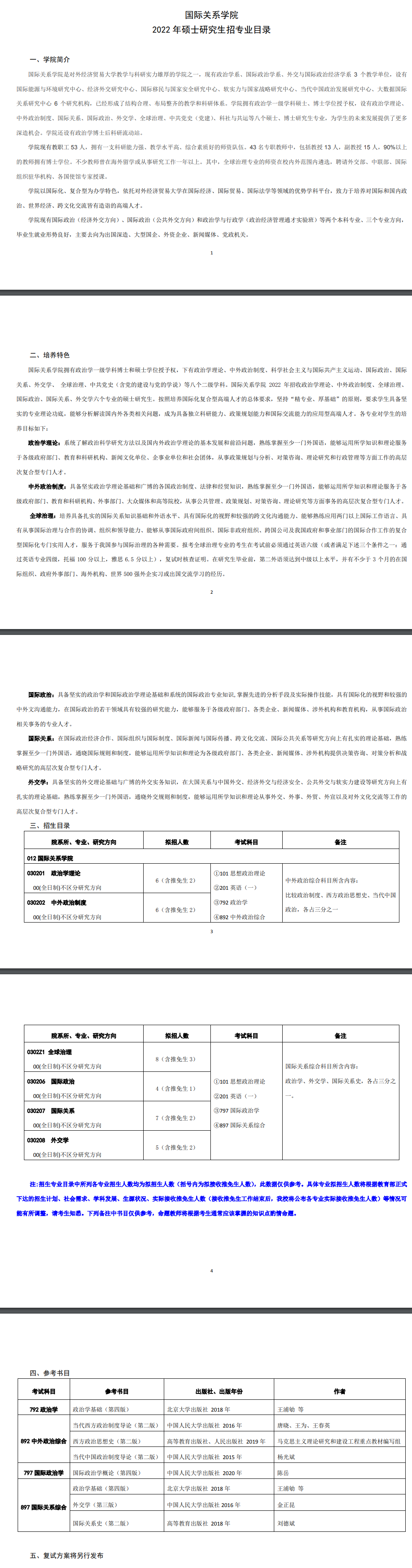 贸大考研辅导班:2022年对外经济贸易大学国际关系学院硕士研究生招生专业介绍、招生人数、参考书公布