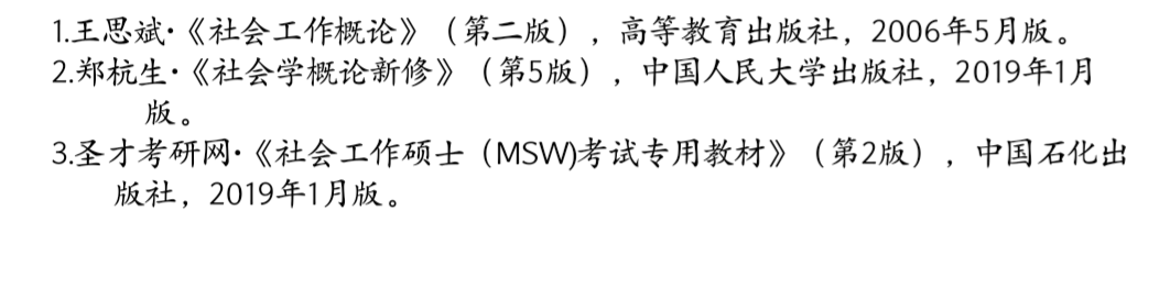 复试:复试参考书可以参考中国社会出版社的最新版的社会工作综合能力。