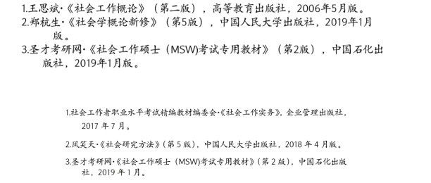 复试:复试参考书可以参考中国社会出版社的最新版的社会工作综合能力。