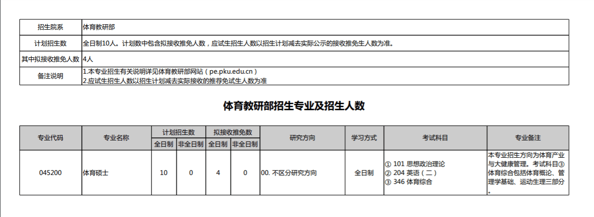 体育教研部招生专业及招生人数