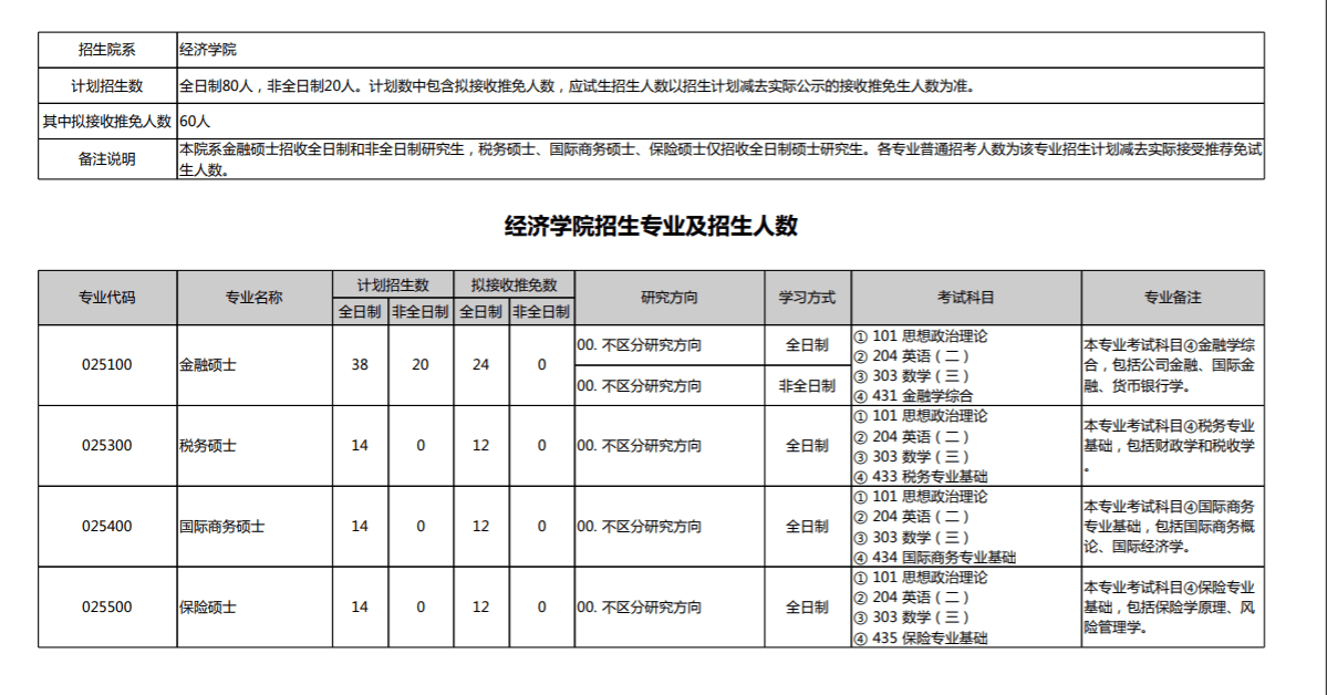 经济学院招生专业及招生人数