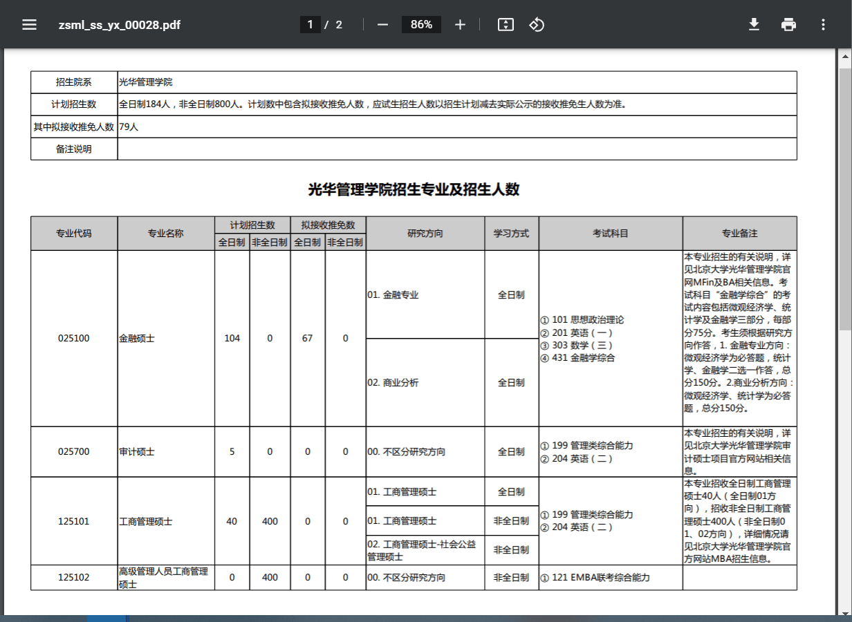光华管理学院招生专业及招生人数