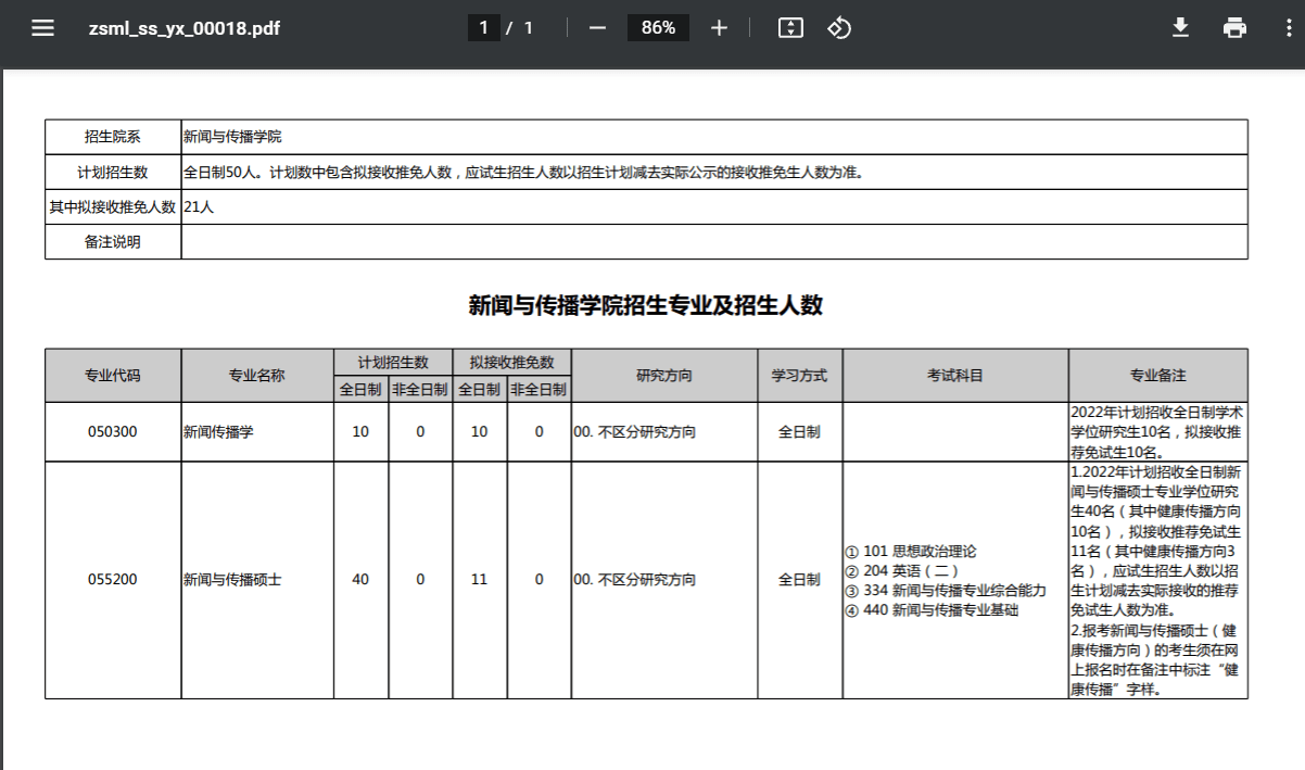 新闻与传播学院招生专业及招生人数
