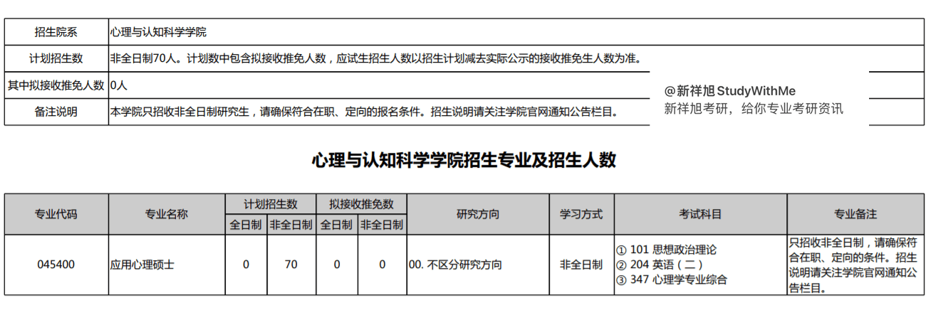 心理与认知科学学院招生专业及招生人数