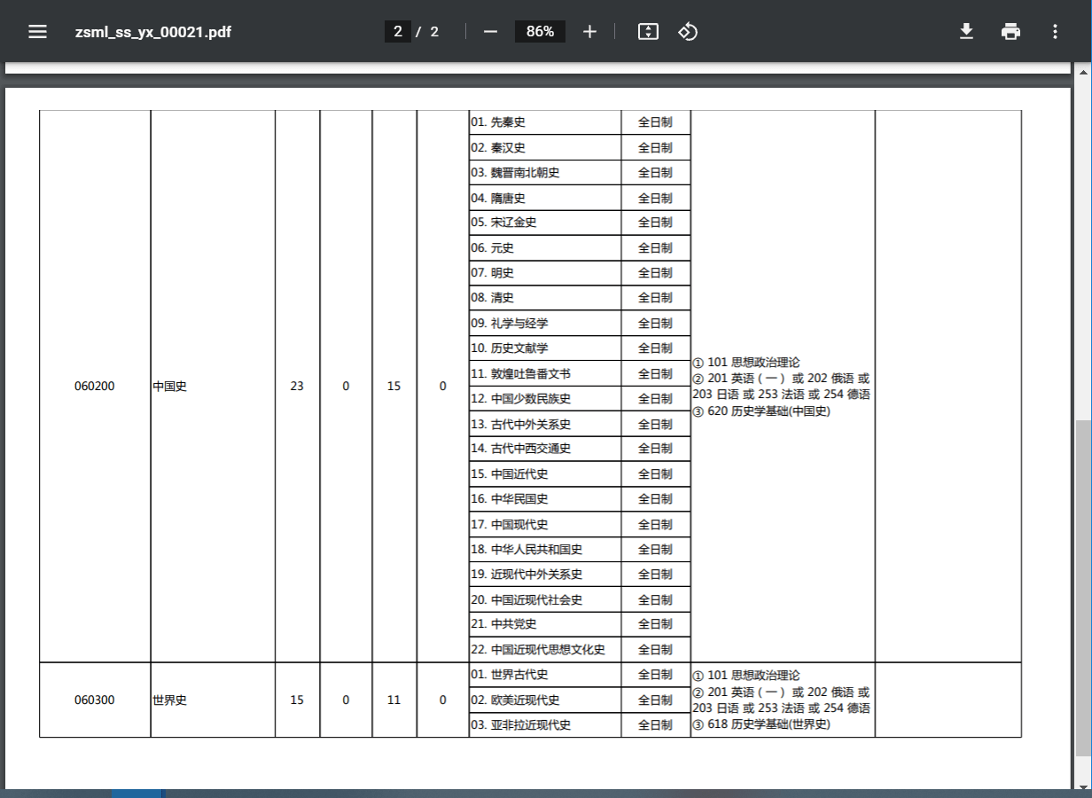 历史学系招生专业及招生人数