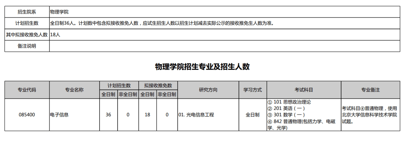 物理学院招生专业及招生人数