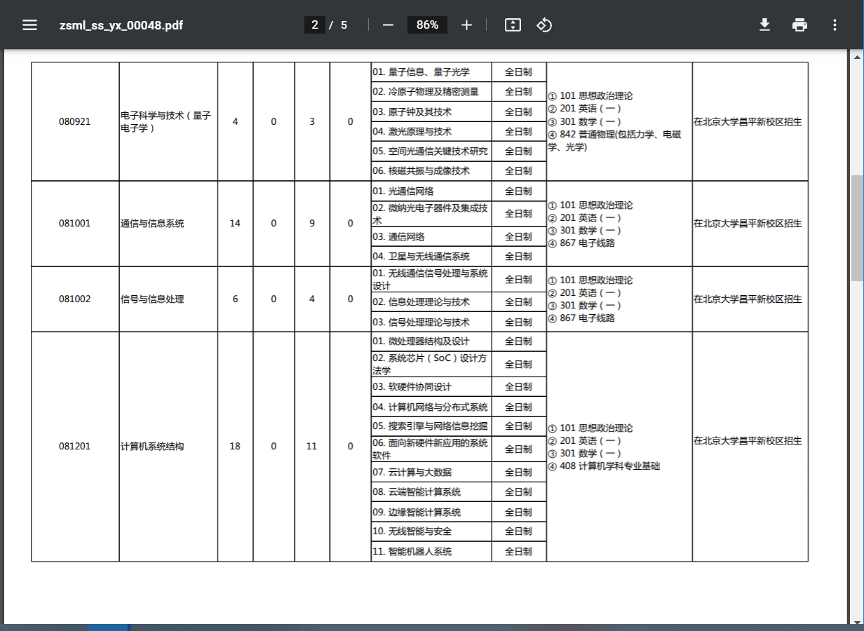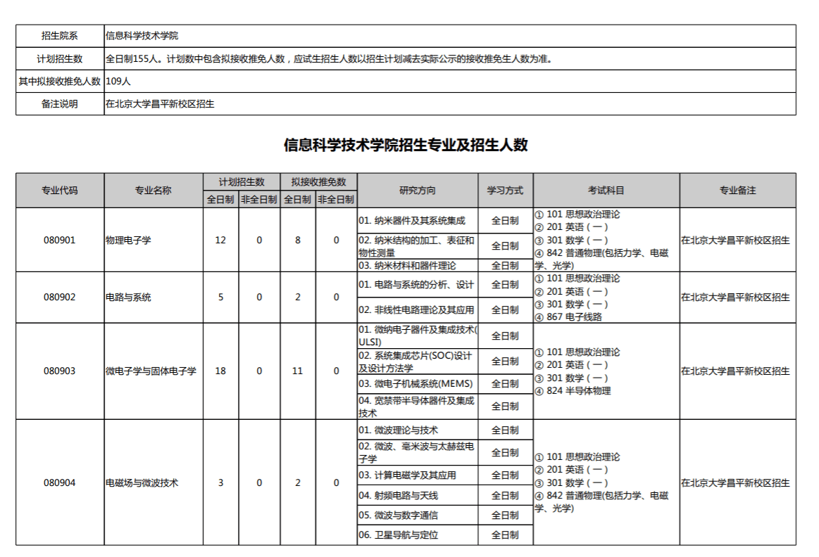 物理电子学 电路与系统 微电子学与固体电子学 电磁场与微波技术 电子科学与技术(量子电子学) 通信与信息系统 信号与信息处理 计算机系统结构 计算机软件与理论 计算机应用技术 计算机科学与技术(智能科学与技术)