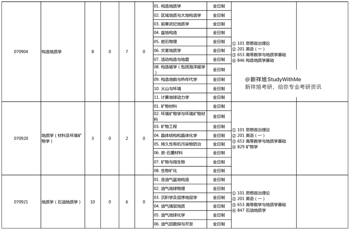 地图学与地理信息系统 空间物理学 矿物学 岩石学 矿床学 地球化学 古生物学与地层学 构造地质学 地质学(材料及环境矿物学) 地质学(石油地质学) 摄影测量与遥感