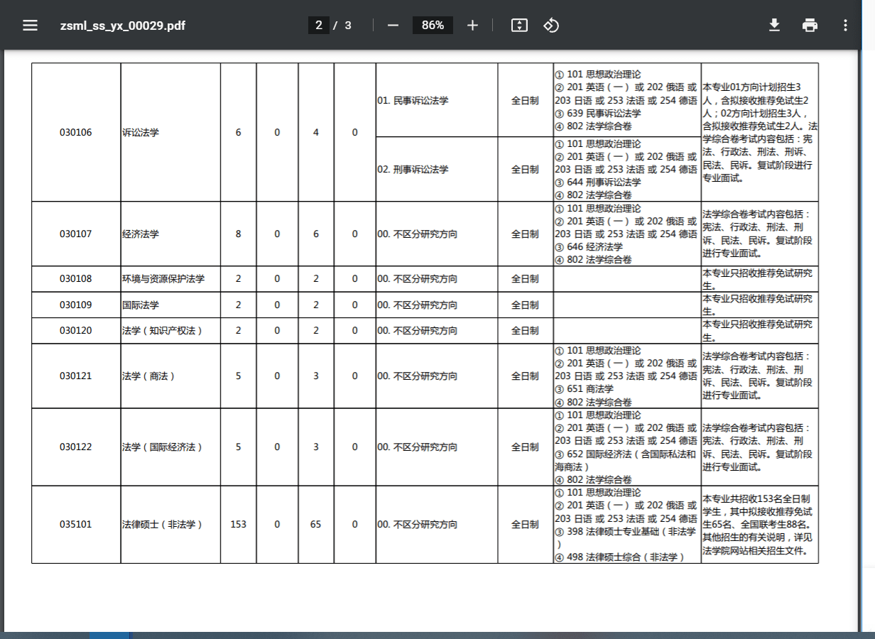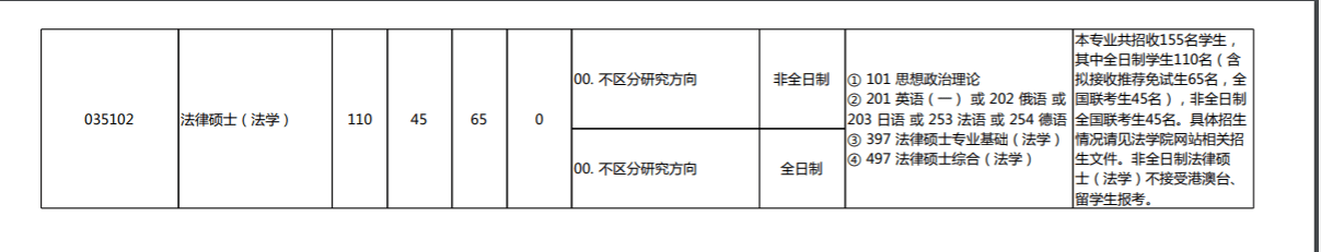法学理论 法律史 宪法学与行政法学 刑法学 民商法学 诉讼法学 经济法学 环境与资源保护法学 国际法学 法学(知识产权法) 法学(商法) 法学(国际经济法) 法律硕士(非法学) 法律硕士(法学)