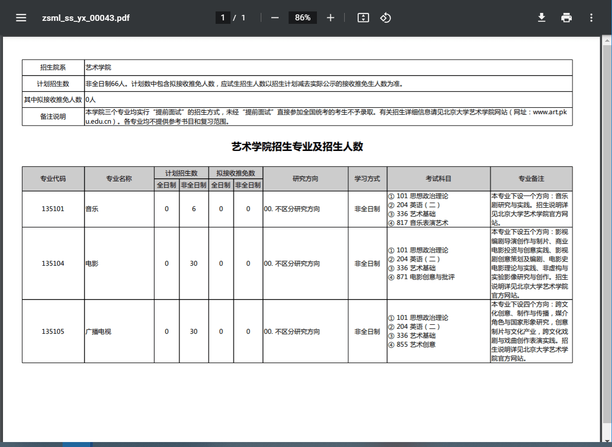 艺术学院招生专业及招生人数