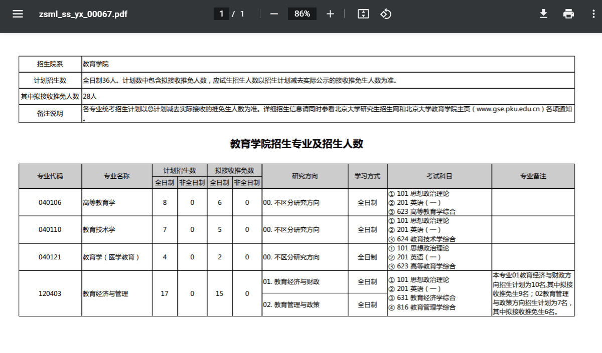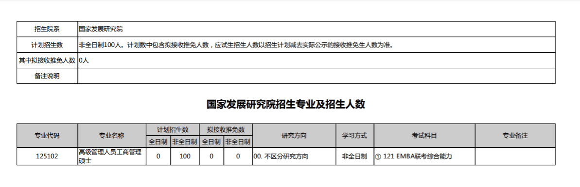 国家发展研究院招生专业及招生人数