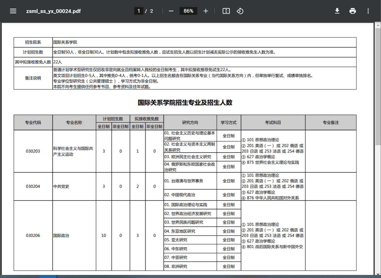 科学社会主义与国际共产主义运动 中共党史 国际政治 国际关系 外交学 政治学(国际政治经济学) 政治学(比较政治学) 政治学(国际组织与国际公共政策) 公共管理硕士