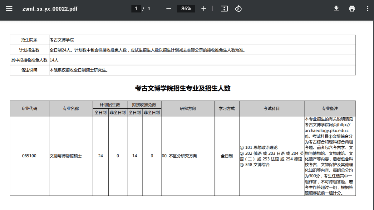 考古文博学院招生专业及招生人数