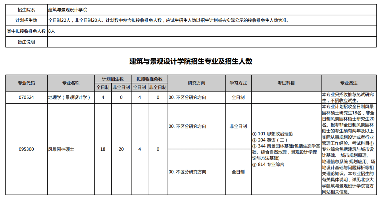 建筑与景观设计学院招生专业及招生人数