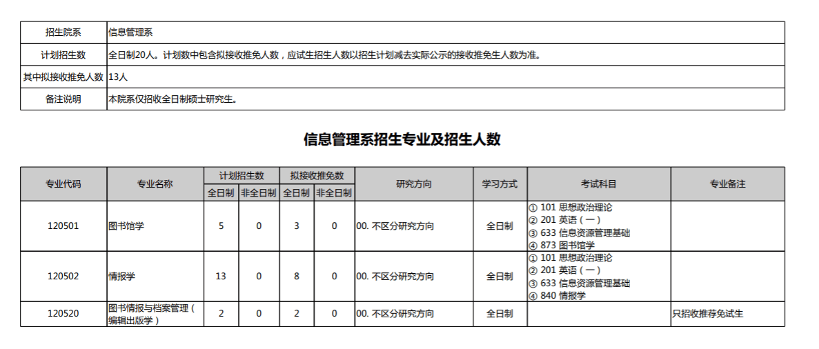 信息管理系招生专业及招生人数