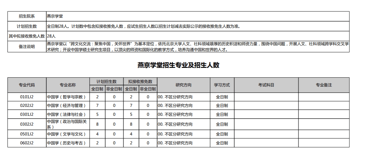 燕京学堂招生专业及招生人数