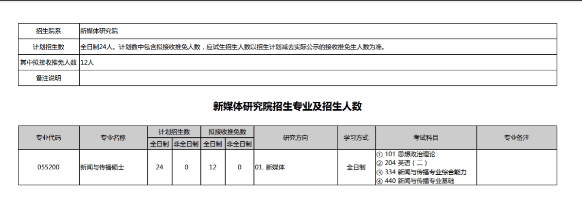 新媒体研究院招生专业及招生人数