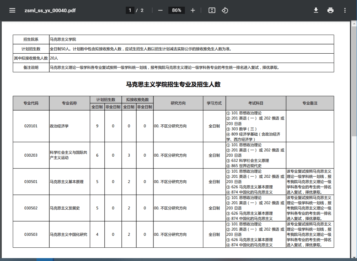 马克思主义学院招生专业及招生人数
