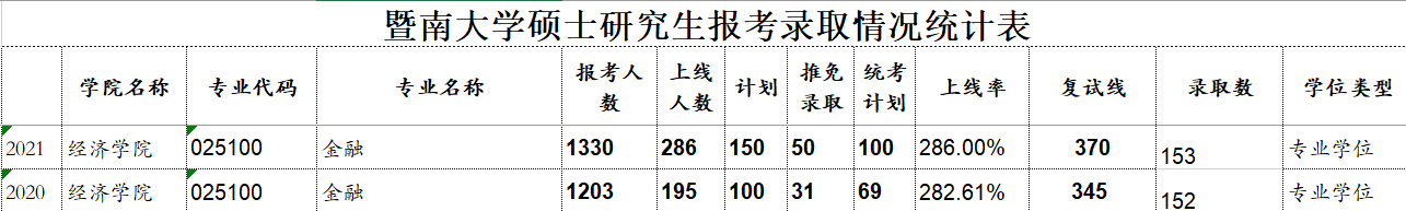 专业选择上因为本科专业就是金融,金融这块如果想去深入研究或者找一份好的工作的话学历是很重要的一part,大家选专业的时候可以去看看行业前景,看看一些大厂的招聘,就能对自己的选择有更深入的想法。对于金融类的工作来说,像投行、基金、行研基本都是要求985、211院校毕业的,还限制了必须是硕士研究生,甚至本科就得是211、985,如果没有达到学历连进去的门槛都没有。这也是我选择升学以及继续在本专业深造的一部分原因。如果是跨专业的同学我觉得更是需要好好规划下未来的方向,是否想从事相关的工作。今年暨南大学的广州本部和深圳校区都有招收金融专硕,深圳是招金融科技方向的,所以应该会有计算机方面的提问,如果是计算机跨考深圳校区面试上应该会有优势。
