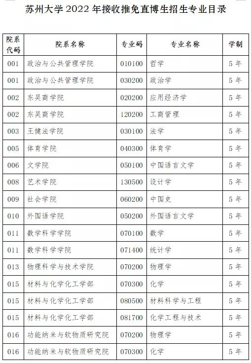 我校部分博士招生专业招收本科直博研究生,详见“苏州大学2022年本科直博研究生招生专业目录”(附件1)。