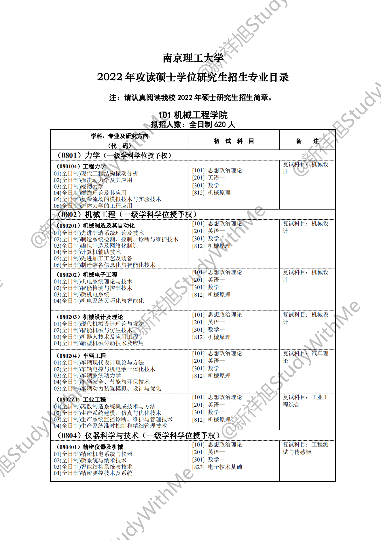 新祥旭导读::本文信息来源于相应大学的研招网官网《南京理工大学2022 年攻读硕士学位研究生招生专业目录》,适用于参加21年12月底考研的学生,可供21年及以后考研的学生参考。