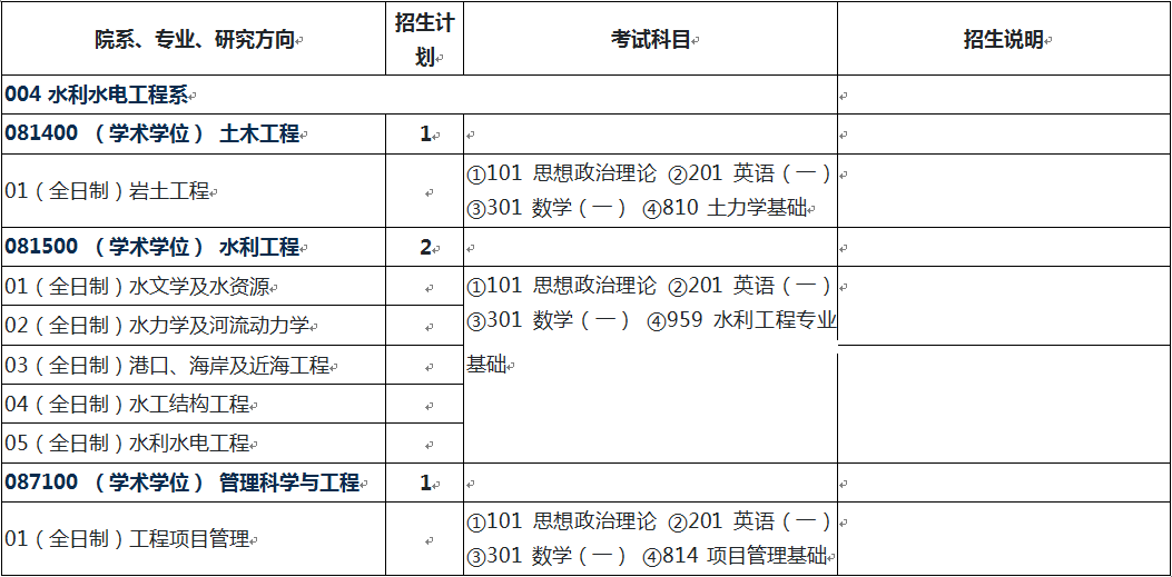 2022年清华大学水利水电工程系硕士研究生招生专业目录、考试科目、招生人数