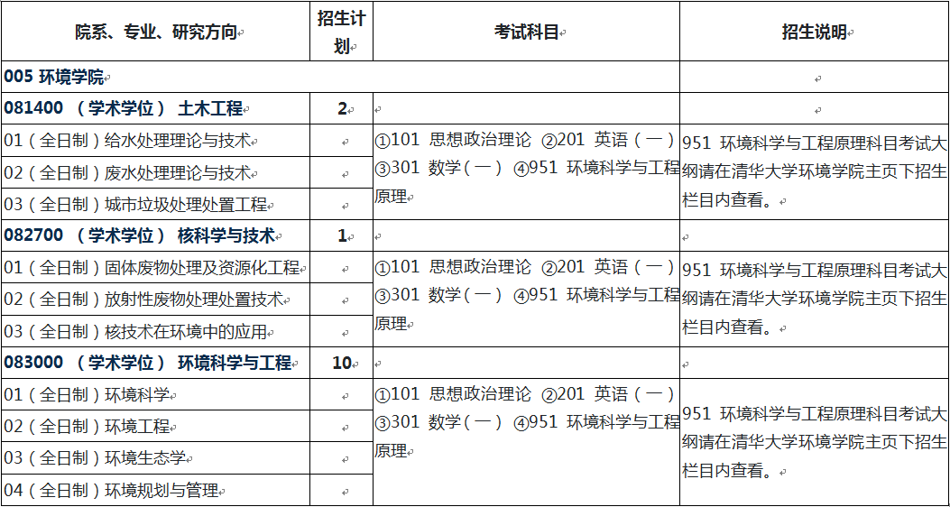 2022年清华大学环境学院硕士研究生招生专业目录、考试科目、招生人数