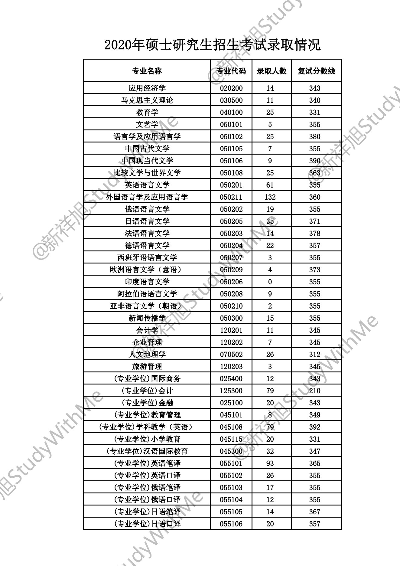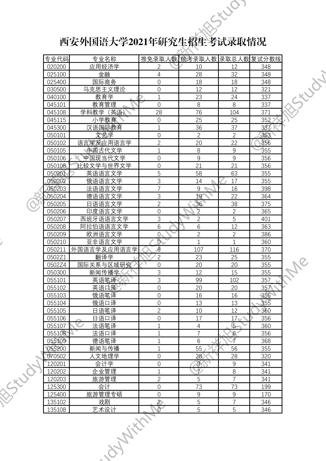 西安外国语大学2021年研究生招生考试录取情况