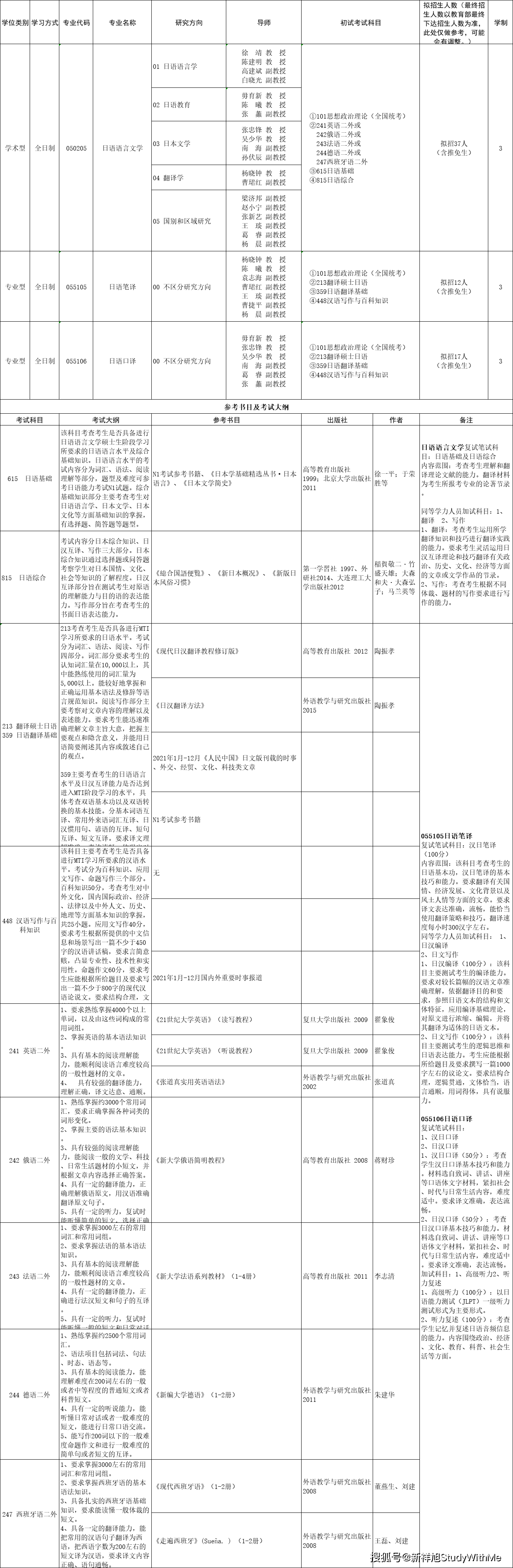 西安外国语大学日本经济文化学院2022年硕士研究生招生专业目录