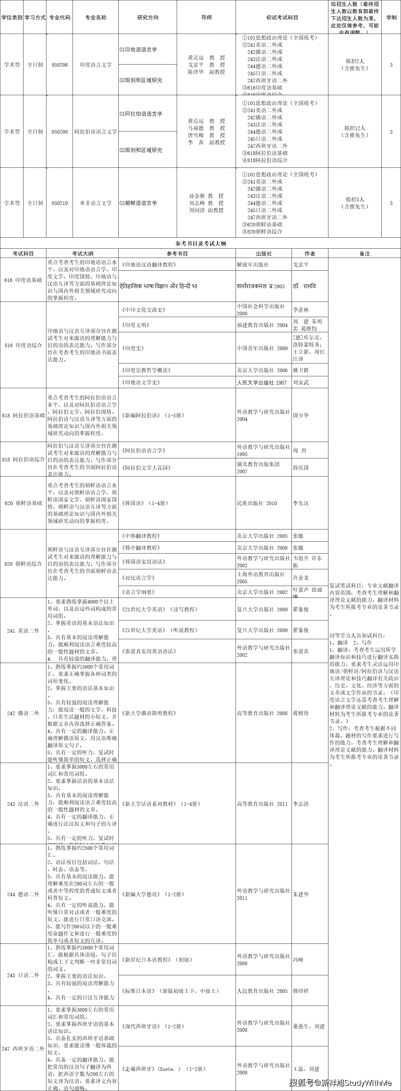 西安外国语大学亚非学院2022年硕士研究生招生专业目录