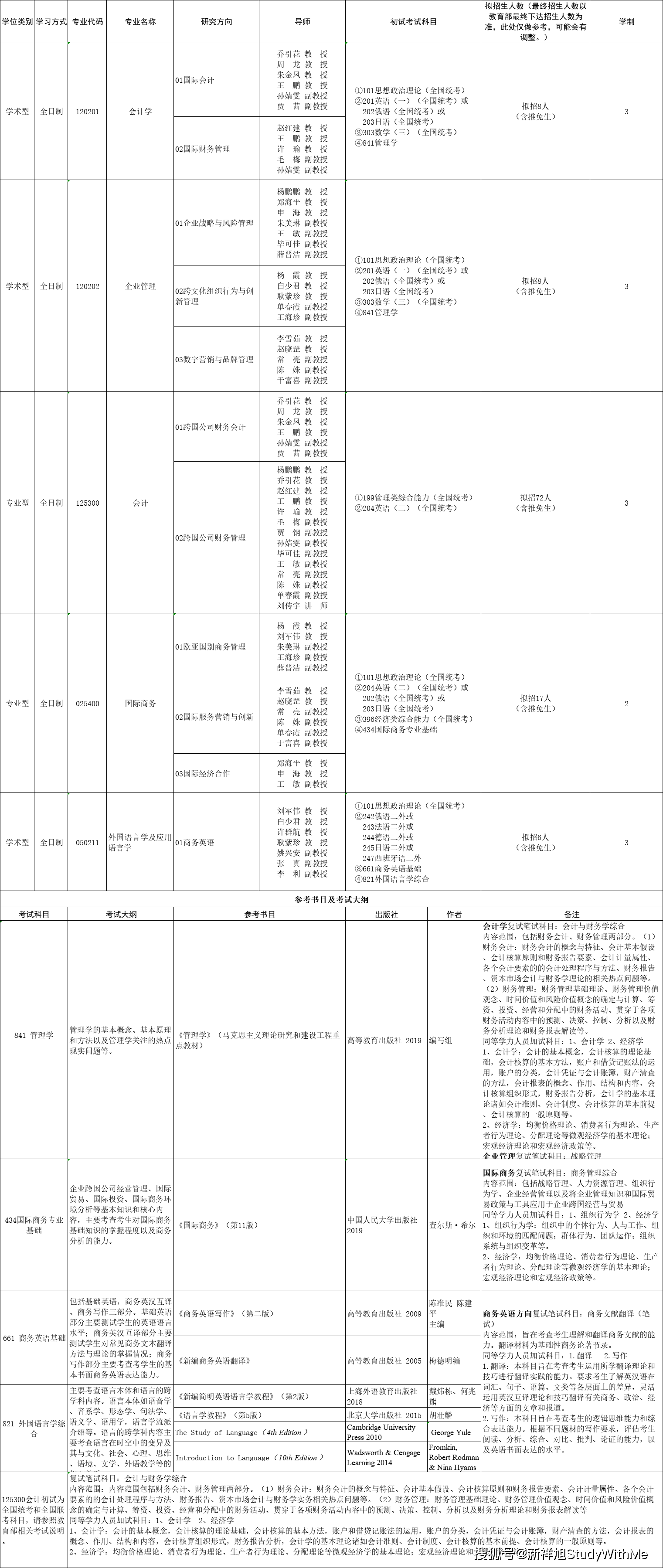 西安外国语大学商学院2022年硕士研究生招生专业目录